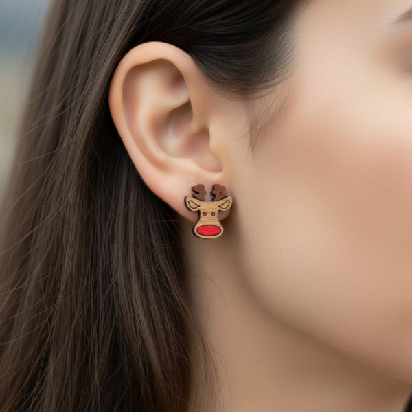 Boucles d'oreilles en acier inoxydable avec pendentifs en bois massif .