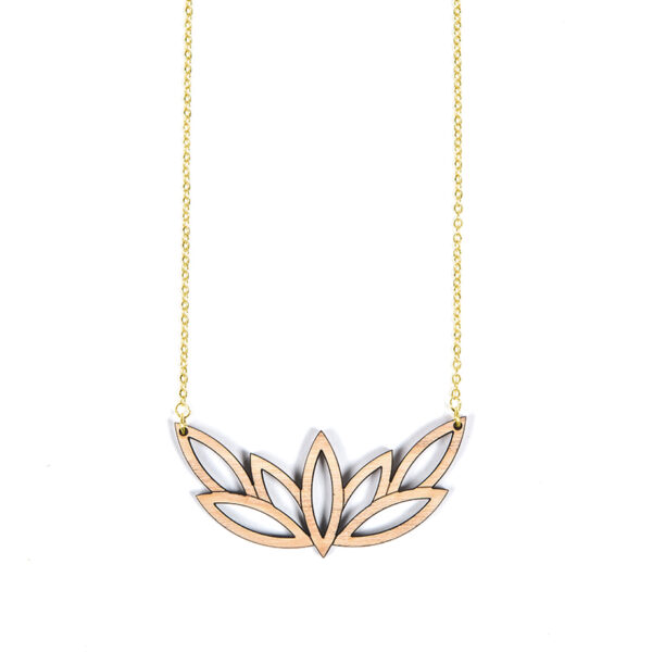 - Colliers superposés en laiton trempé dans l'or avec pendentifs en bois massif.